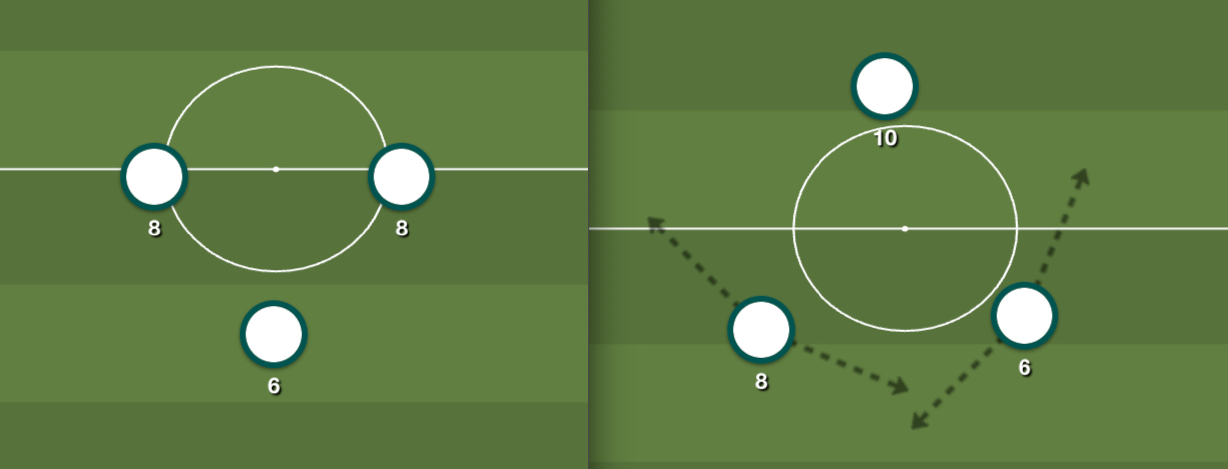 One primary reason the No. 10 role suited Miranchuk specifically is it spared him from doing much sprinting to track streaking fullbacks or other quick players he’d find on the wings. How will he press in this system? Against a back three, a pressing situation is relatively simple man-for-man – if aggressive. But against more common two banks of four, the press will need some pretty consistent communication and muscle memory on how to close down on the ball.