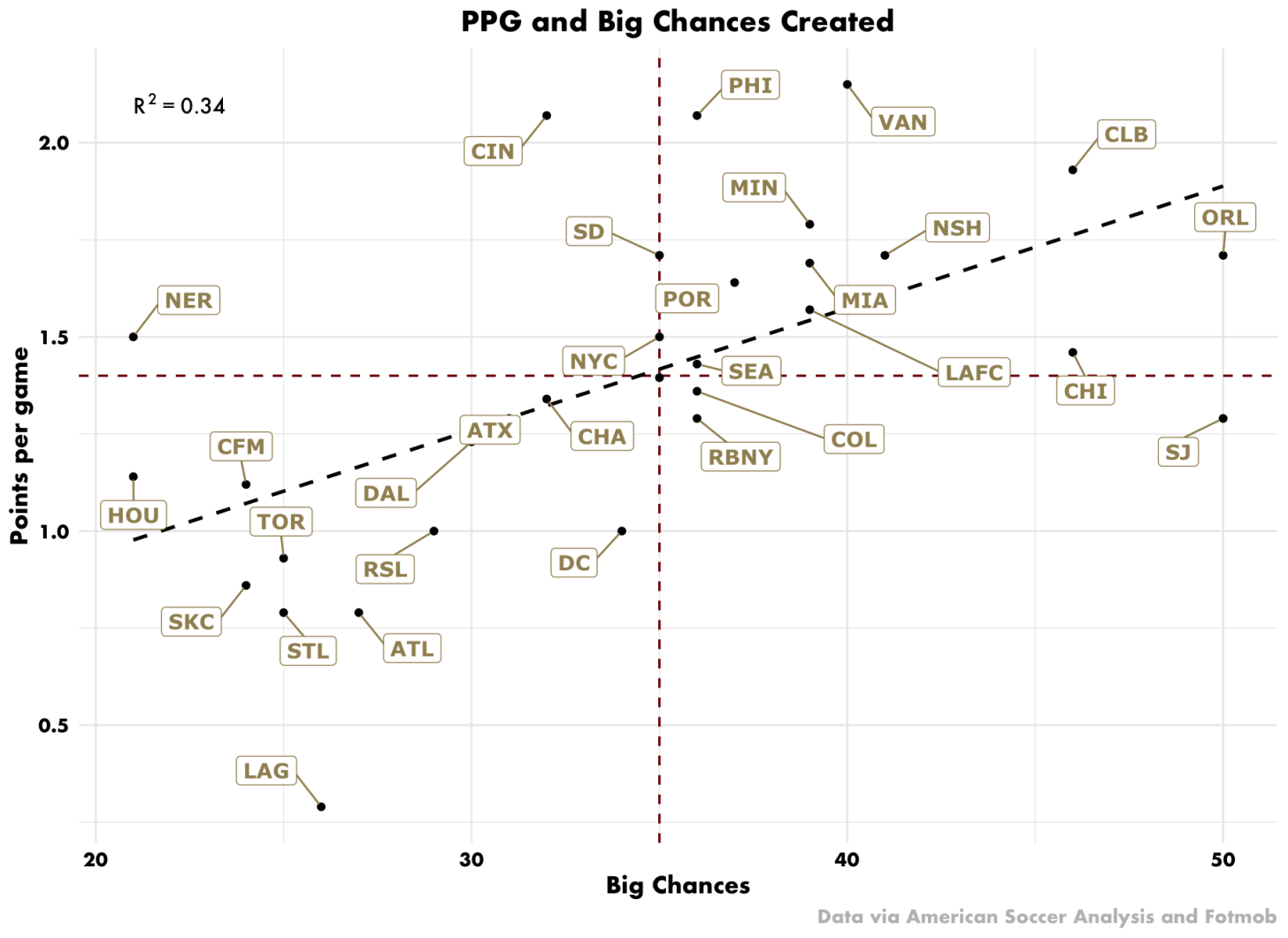 Unsurprisingly, teams that create more big chances score more goals and win more games.