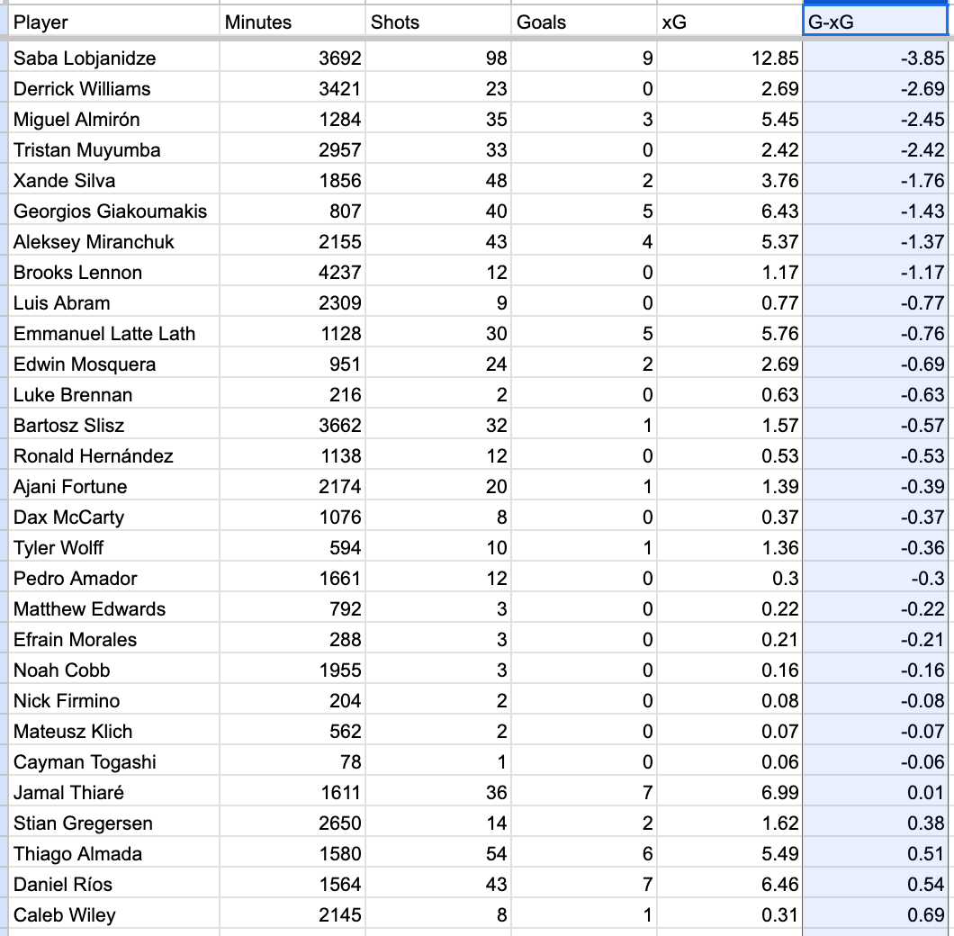 Frankly, I don’t really understand the idea that a team is supposed to convert a certain number of chances. Chances aren’t a punch card for a free goal. However, he’s definitely right that Atlanta aren’t converting chances at anywhere close to a normal rate.