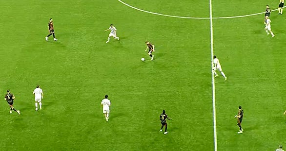 Sanchez is quick to recognize that (1) Muyumba is in trouble and (2) Galarza is set up on the touchline. No one is going to solve this problem but him. He comes across the field to move into the space the Union defenders have vacated, receives the ball and without even a little hesitation knows exactly where he’s going with the ball. He puts it right on Elías Baez’s foot and Atlanta are off and running. It’s an outstanding goal and an outstanding moment from a young player.