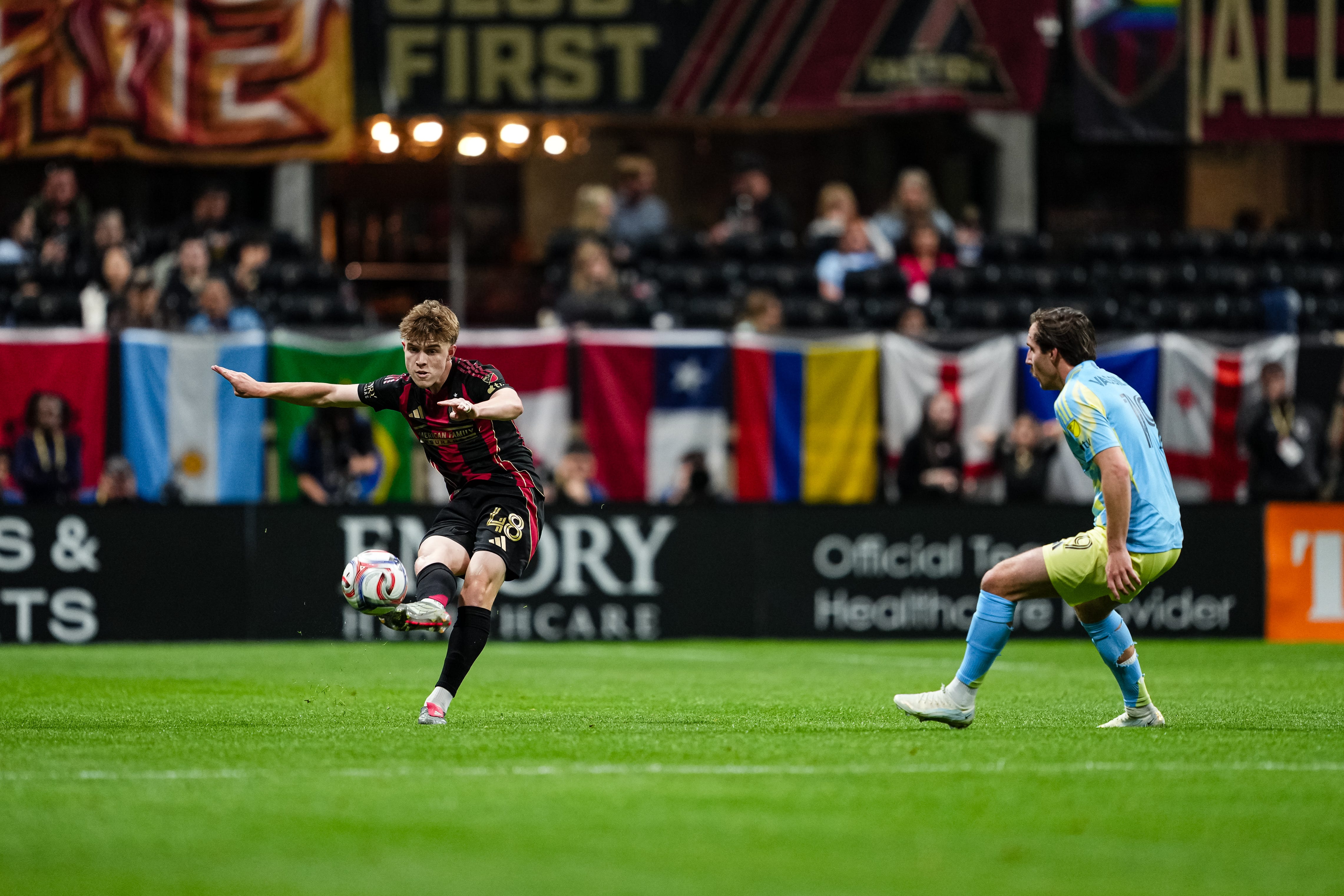 Keep an eye on Atlanta United midfielder Cooper Sanchez at the bottom of the screen here. The 17-year-old is going to move into space, make a clean first-touch pass, move into space again and then…well, then he’s going to pass a ball directly to a defender and then get launched into the first few rows of the Buckhead section.