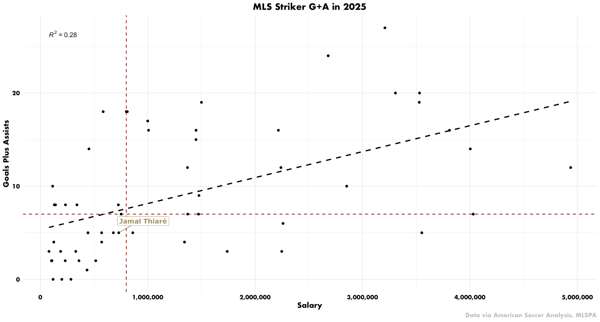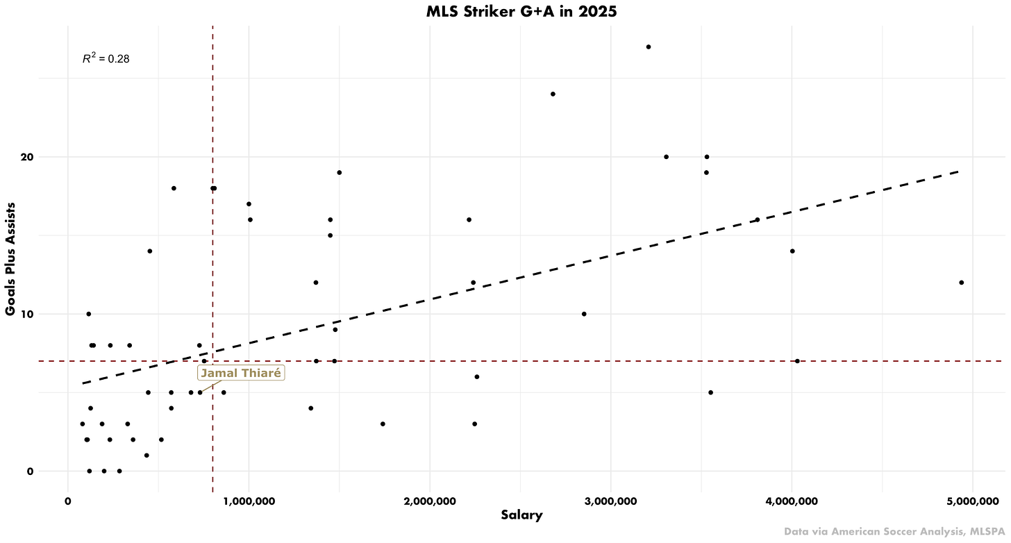 When Atlanta United picked up Jamal Thiaré’s 2026 option last week, a few folks understandably bristled. Thiaré’s budget charge came in at $730k last year. It will be virtually the same in 2026* (*I asked). That’s a hefty price for a backup striker in MLS.