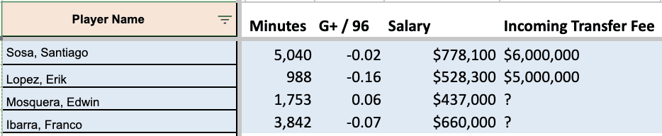You can see, in theory, how that can be a fantastic way to find value in a salary cap league. Santiago Sosa could have easily been a Designated Player based on his salary and transfer fee. Instead, he cost a senior roster spot and $200k against the salary cap