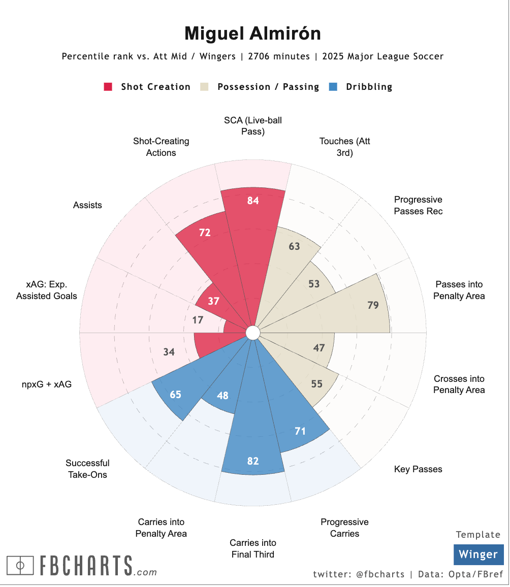 I’ll lay out my general thesis at the top here, though: Almirón is still pretty good at this and I tend to think his lack of production can be remedied in the right system.